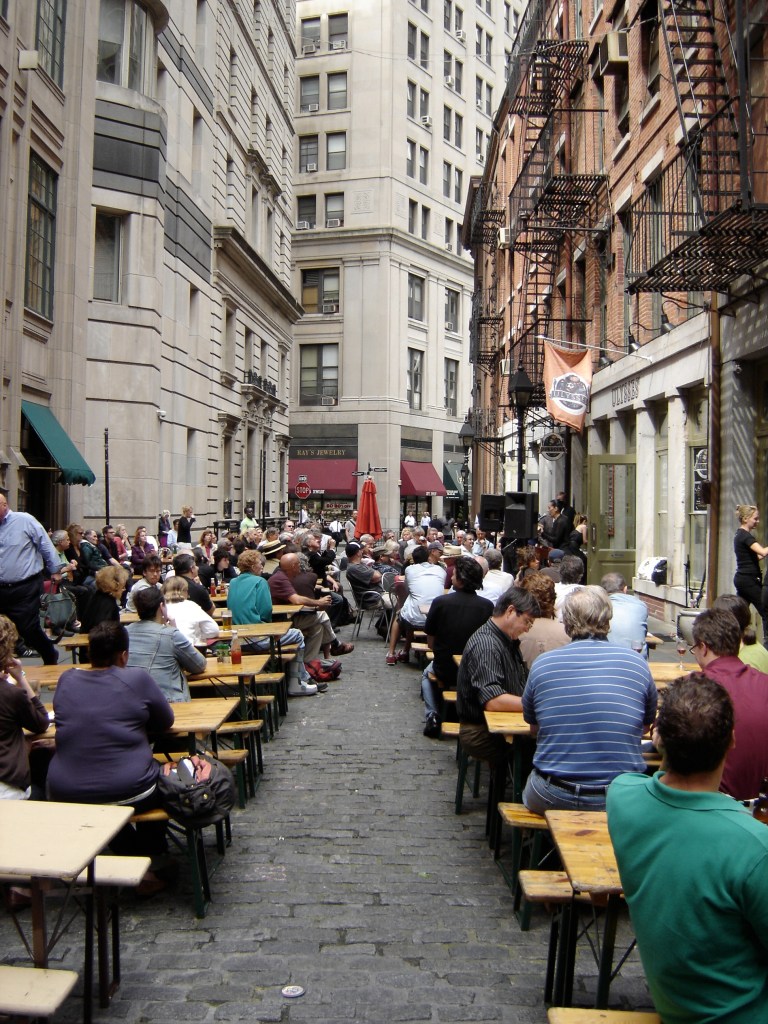 Amidst the slate-gray geographic jigsaw puzzle of downtown Manhattan, Stone Street is a picturesque anachronism, a valley of nineteenth century architecture with its brick rectangles lined with pubs. And on the afternoon of June 16th, one of its pubs, Ulysses Folk House, celebrated both its anniversary and the day the spirited, expansive Modernist novel it is named for is set on.