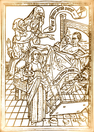 Fast forward to the Late Middle Ages. It wasn’t a “Dark Age”, and it probably wasn’t a bad time to be alive. It was just a short time. Religion was one of the most important things back then, and your faith dictated where you would go and what would happen to you. In 1415, a Dominican friar sought to make passing a little bit easier for the masses with the Ars Moriendi (roughly translated from the Latin as “The Art of Dying”). This text was a book of prayers written for the dead and dying and was published in two versions, with the shorter, more condensed version easily accessible by many. These were printed in black and white, but there were also hand-colored “deluxe” versions, if you could spare the expense. These books contained mostly illustrations for the illiterate masses, and could be read to you in Latin by a cleric.