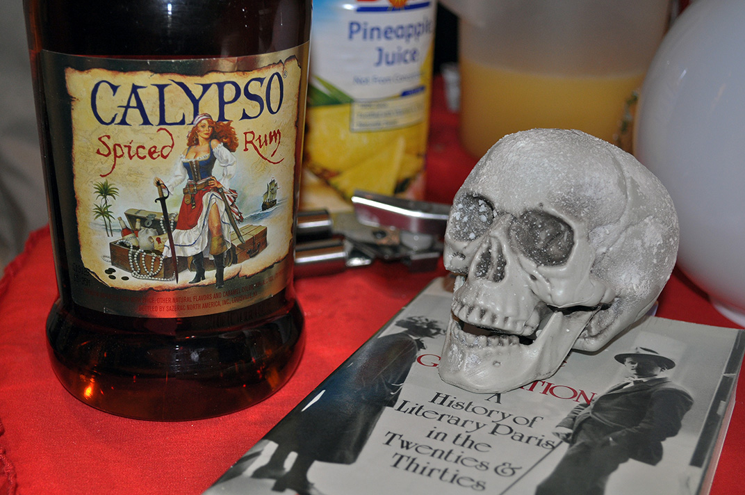 The four of us gathered at the clubhouse of John’s condo where an important meeting was taking place, so we were subsequently relegated to a hot, cramped back room that was still decorated for Halloween. The walls were entirely black and covered with drawings of skulls and messages of death scrawled along them, but every writer worth her grit knows that literature isn’t about comfort, nor for that matter, is drinking. John initiated our union by mixing together equal parts white rum, dark rum, orange juice, pineapple juice, and more than a splash of grenadine into a pitcher large enough to quench the thirst of an entire little league team.