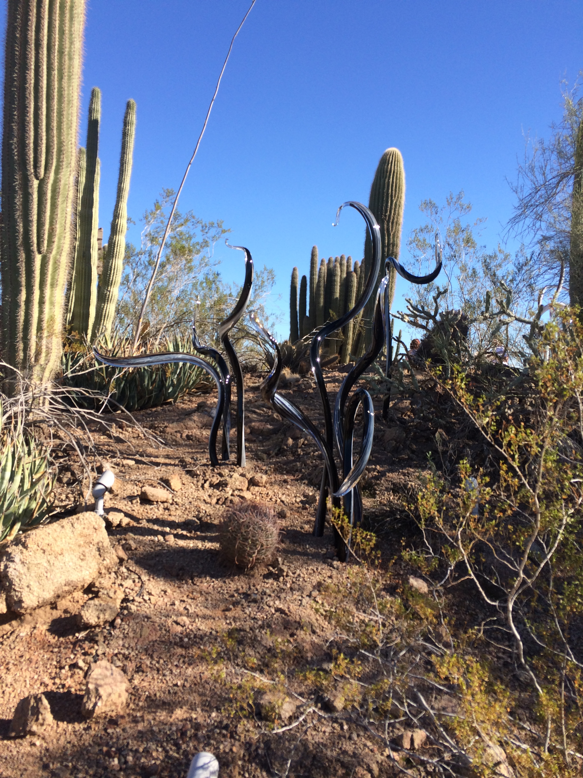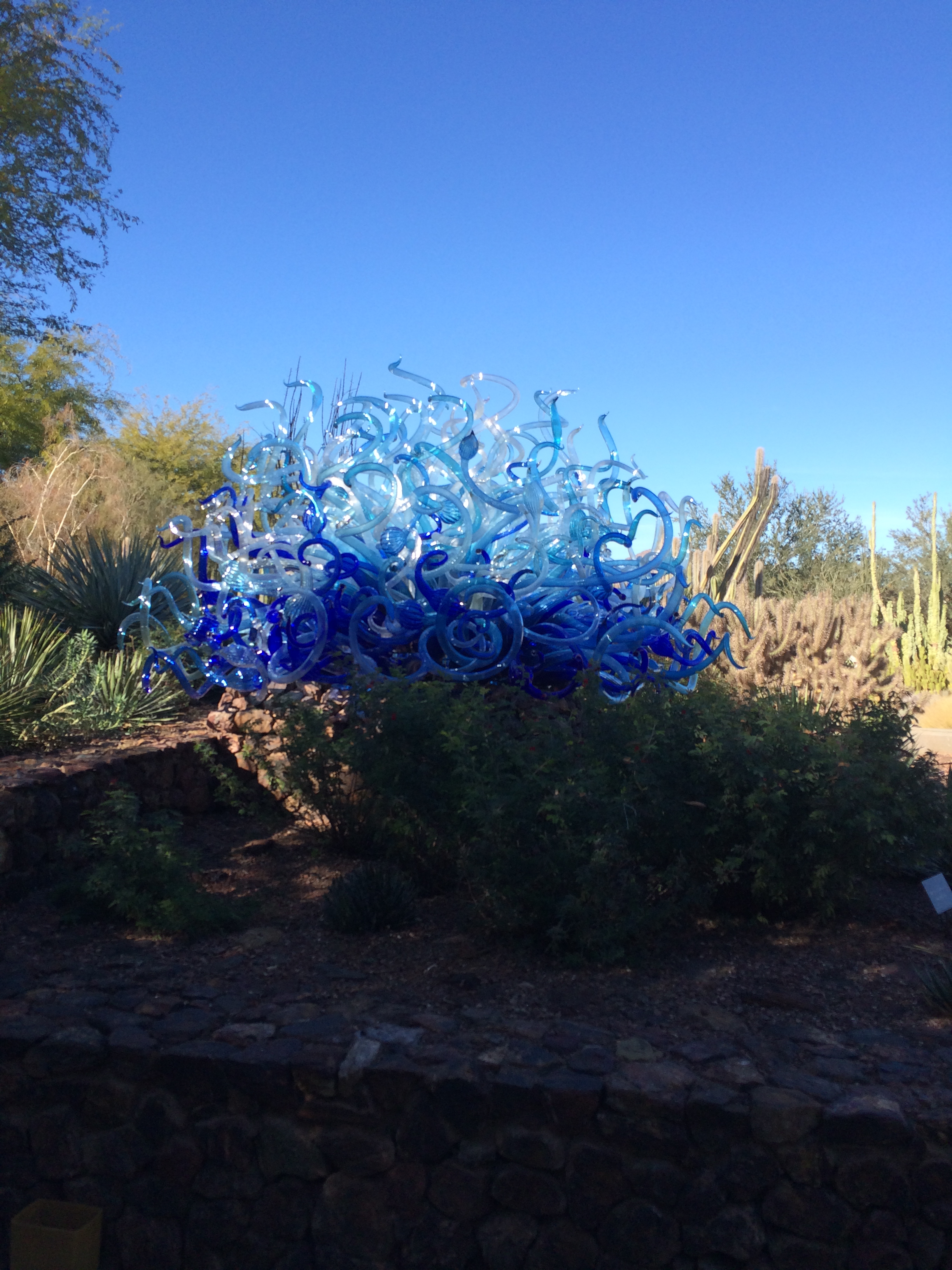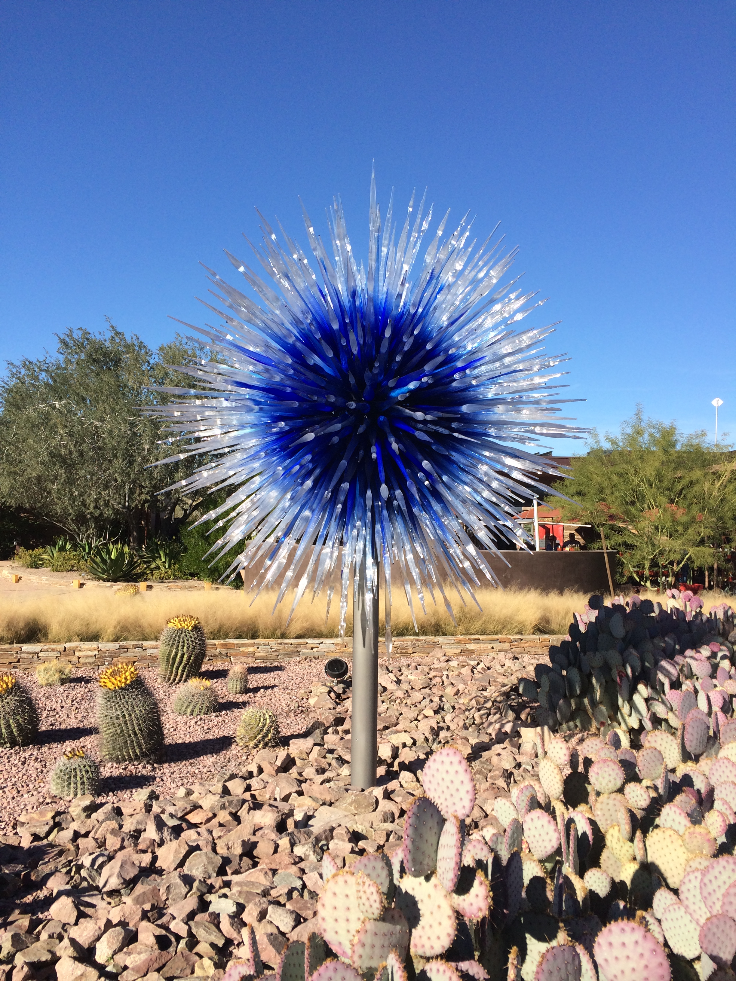 We have malls in Florida. Granted that Scottsdale was the size of three Millenias put together and I’d classify it as a good place to wander for a while, we’d be going there for lunch before we flew back to Orlando anyway. That was out. As for Option 2, I like instruments, and I like museums (DUH), but we were in the middle of Arizona. In the desert. The gardens were calling my name. There aren’t many cacti in Florida, I loved the climate out there (asthmatic lungs rejoice!), and really, how many other times would I be in Arizona? This was my second (last?) trip out there. While others complained and opted for the hotel or other venues (and I quote: “I don’t wanna go look at a cactus for three hours.”), I shelled out the $12 student admission fee and went in. It wasn’t until after I had done so that I realized that Dale Chihuly had installed art here, and that I’d be there to see it. So, I freaked out like a preteen girl at a Beiber concert throughout my time there. Armed with a dying iPhone that I’d forgotten to charge earlier, I took about 50 photos. Here is a sampling of said photos. I’m eternally thankful that Dale encourages photography. Put on some comfy shoes, Odysseans, we’re goin’ for a stroll.