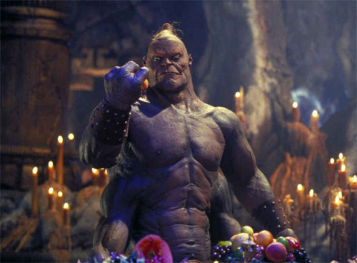 This makes things confusing since there are three of them and I don’t know which one I’m supposed to root for. Sonya kills Kano by breaking his neck (they don’t build cyborgs like they used to). Johnny Cage takes out Scorpion (who is really scary since he’s like ghost/undead guy who can breathe fire out of his mouth). Liu Kang fights Sub-Zero and puts him on ice (Ha!). Goro turns out to be rather intimidating since he can grab contestants with his lower arms and pound them with the other two. Johnny Cage avoids this fate by punching Goro in the sweet spot and sending him plummeting over a cliff.