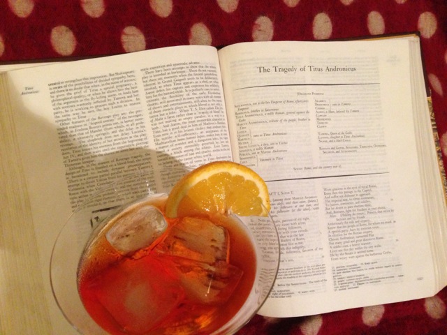 I’m interested in this collaboration. James Shapiro suggests that Peele wrote the opening because Shakespeare was “the less established writer.” But doesn’t that leave all the juicy stuff for Shakespeare? And why just one random scene in the rest of the play? It’s as if, in the end, Shakespeare found he couldn’t bear to give his play over to another writer. Did Peele write scenes that Shakespeare rejected? Rewrote? Why did he need Peele? Did he not have time to write the play himself? Certainly, the last act feels rushed and perfunctory, a double-time cavalcade of murder and retribution. (Tamora barely has time to register that she’s eaten her sons before she’s killed.)