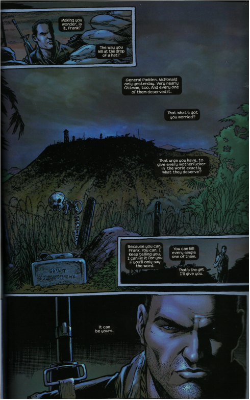 Castle is in a similar situation. He comes close to tossing a grenade into a latrine that his commanding officer is using. The officer had just told Castle that he stopped requesting supplies and just wants to wait out the rest of the war and not draw anyone’s attention. He stops himself, but later he questions that decision. Castle has been changed by his three tours in Vietnam. Some readers have raised the idea that the voice talking to Castle is supernatural, like Satan, but I don’t buy it. There’s no other supernatural element. I believe it’s his conscience. He questions how he could “kill at the drop of a hat.” At first, he tells himself that it’s about the other men at the base. But he throws that idea away. The war has made him a killing machine. “That’s what’s got you worried? That urge you have, to give every motherfucker in the world exactly what they deserve?”