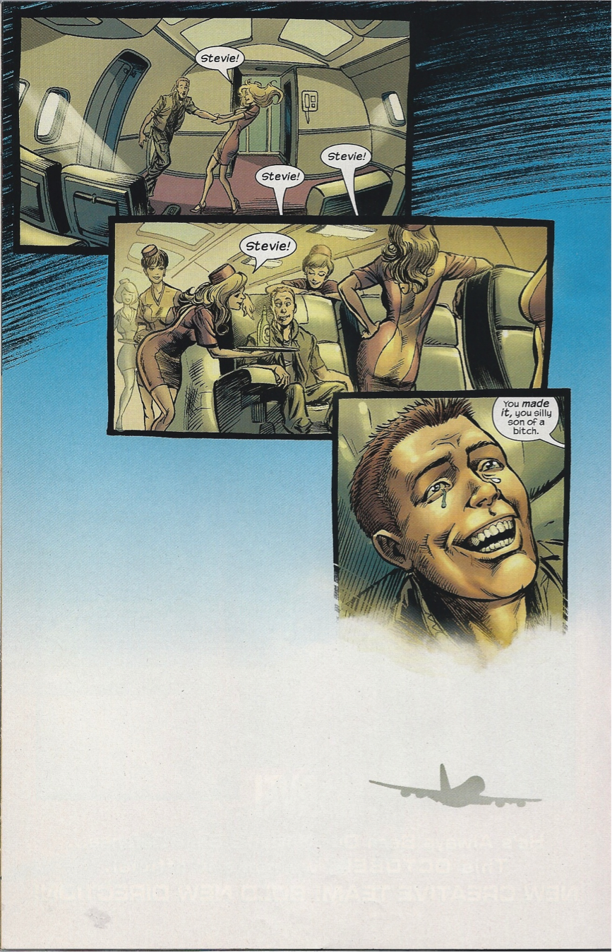 Anti-aircraft guns are used on the Vietnamese. Some are blown away. But there are just too many enemy soldiers. American jets fly overhead and drop bombs. “I was so certain I would make it,” Goodwin says in narration. “The big freedom bird. Thirty-six and a wake-up. I am out of here. In the end I can do no more than follow on a killer’s heels, rushing with him to his Alamo.” A soldier aflame runs at Goodwin with a bayonette ready to strike. Goodwin is grabbed and pulled into a plane. Beautiful flight attendants call his name. One says, “You made it, you silly son of a bitch.” He smiles with tears in his eyes and the plane flies off into the white of the background. He’s dead.