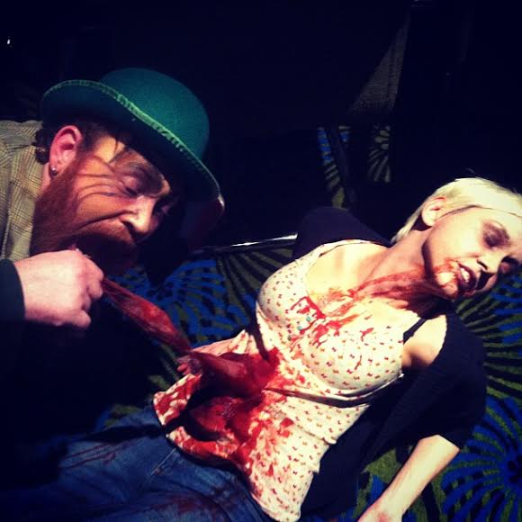 Teege dressed up like an evil Leprechaun and I went as Leprechaun meat, my guts spilling out of my shirt. Around 9:30 we met friends at Redlight Redlight and ordered pizza from O’Stromboli. Drinking a glass of stout in order to stay in character, Teege was laughing and happy, in his element, but he was also a little distracted and kept looking around as if searching for someone. After a couple of hours we left Redlight Redlight to see the midnight showing of The Texas Chainsaw Massacre at the Enzian.