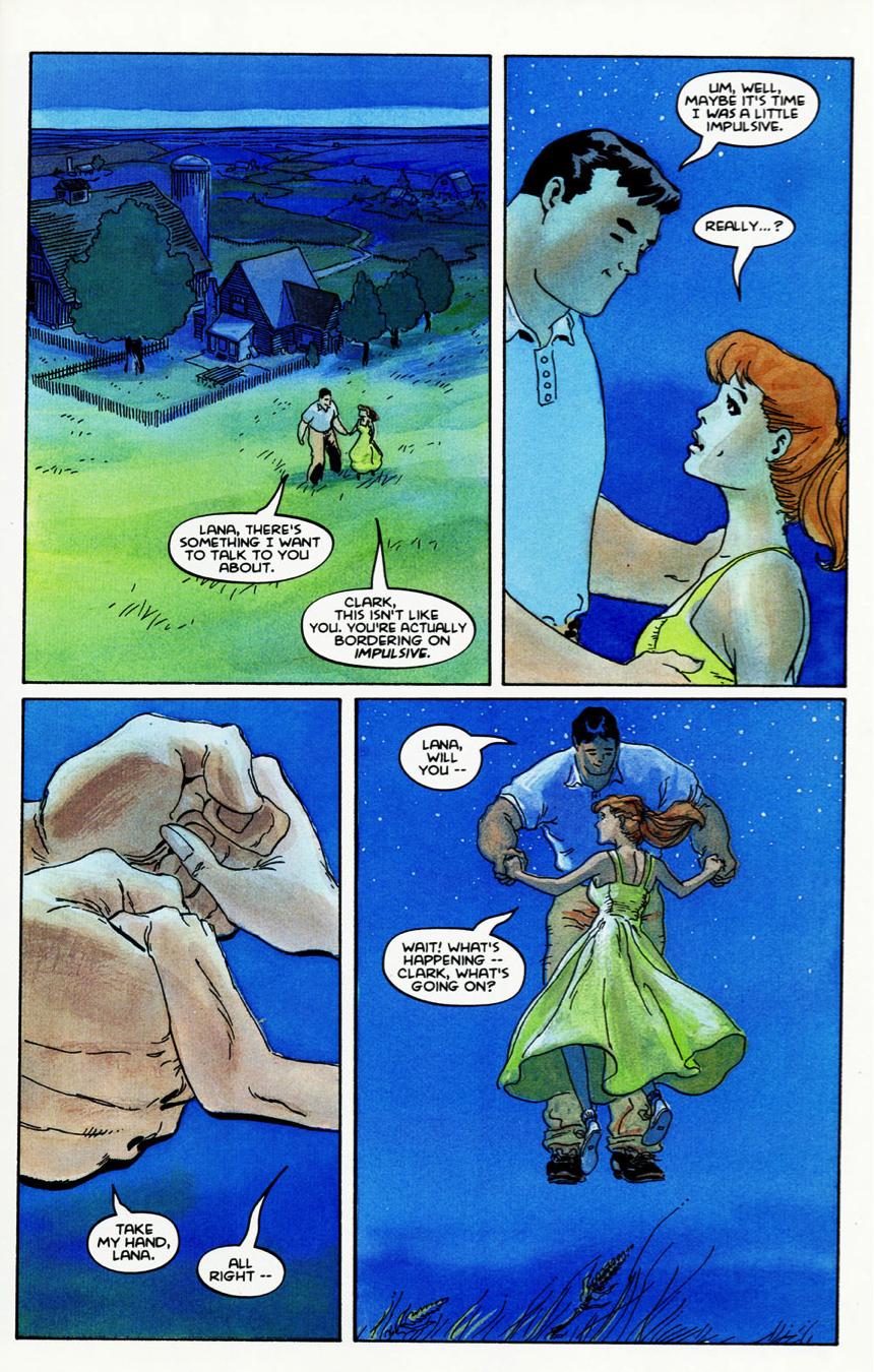 The comic skips Krypton and skips the Kents finding the rocket ship. The story even begins after Clark Kent has discovered his abilities. Where’s the tension and conflict in him discovering his abilities? For All Seasons is not about Superman finding his powers—it is about why Clark Kent must become Superman. The first issue, “Spring,” deals with Clark during his final months in Smallville. It is about a boy who must leave the only home he has ever known because he has the ability to be more than he is.