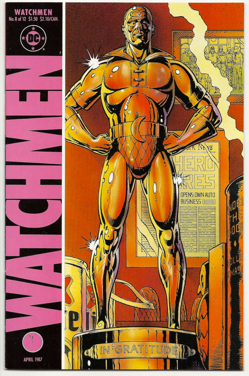 Watchmen, for the most part, is devoid of action. There are blips on the radar, but the comic is very much a bunch of talking heads.