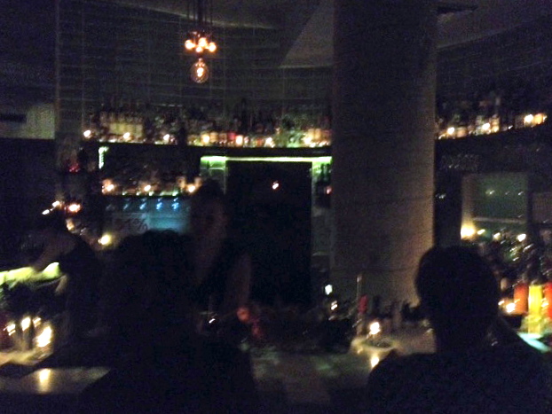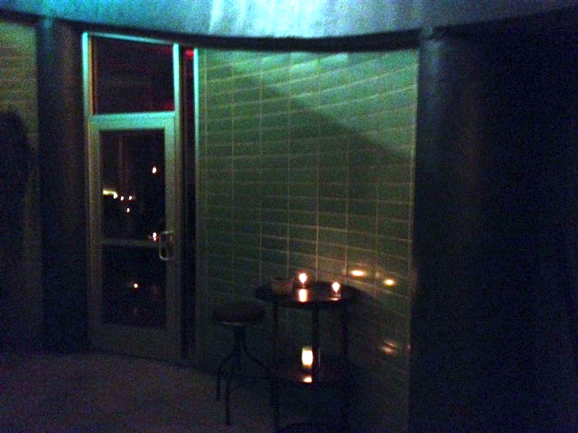 Walk towards the candles, through the entryway with tiled walls that makes it feel you’re entering a parking garage office rather than a bar. Open the door, and now you’re in a dark, cool place (and I don’t mean just hip, but temperature-wise it’s cold in there) with some seating against the wall, upon which the sole décor is a brass horse’s head.