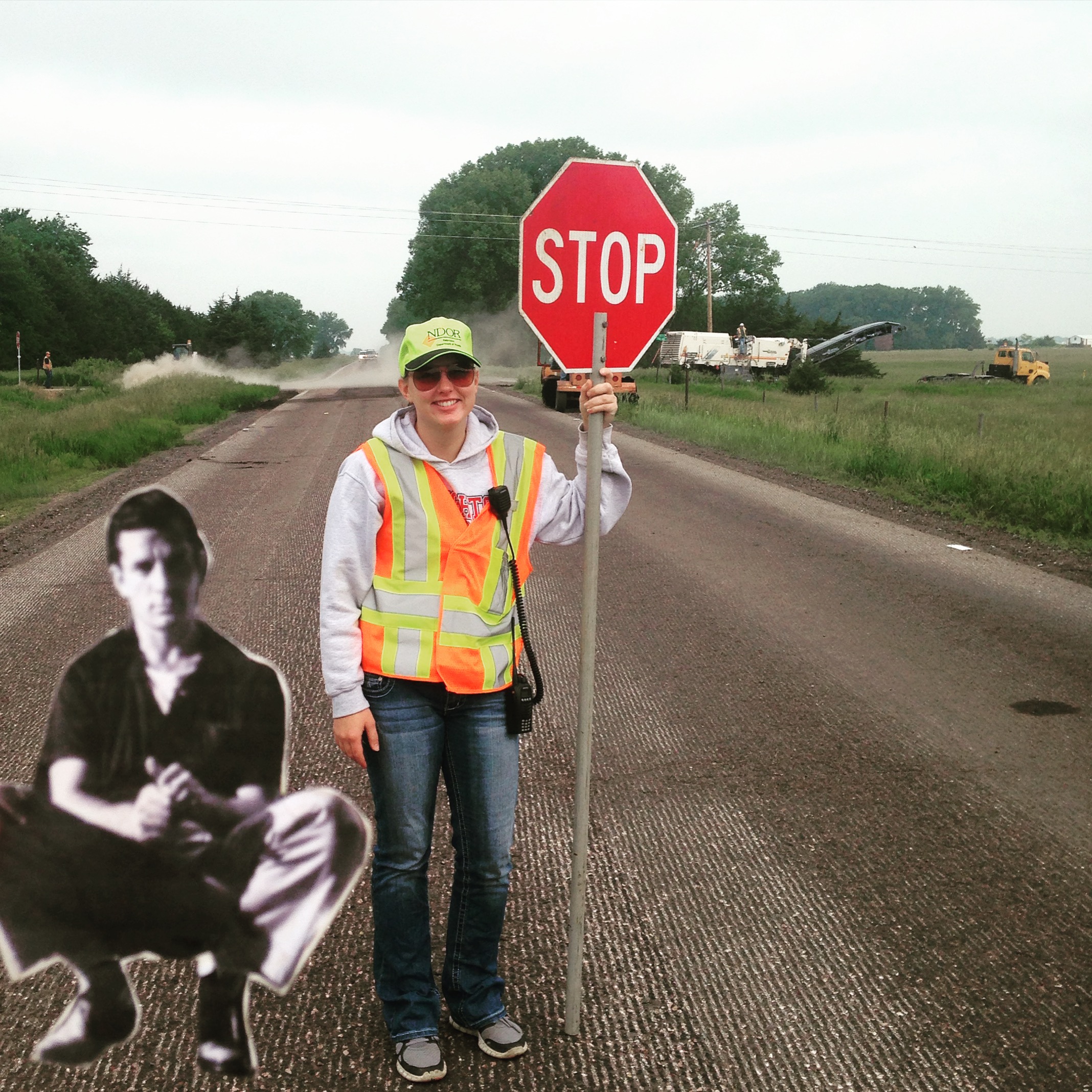 The next morning, I left with a heavy heart, hoping to find myself back in Winside soon. I was stopped by road construction outside Pierce, Nebraska, and photographed Flat Jack with a local girl, holding the “Slow/Stop” sign, who had taken Flat Stanley on her family’s vacation last summer.
