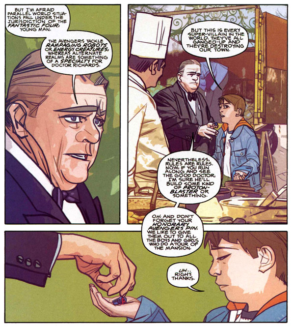 The second problem is that the reader can sense the writer in the story. There’s no real reason Toby doesn’t tell his friends where he’s going. After all, he asks for their help, and to successfully get their help, he should tell them his plan. The reader is then treated to false tension. Another problem, and probably a greater one, lies with point of view. If the reader is following Toby page after page, and the reader is seeing the world through the eyes of Toby, then the reader should understand Toby as a character. Even though in a comic book, point of view is loose. We don’t really see the world from the point of view of Toby because we as readers see characters and events that Toby does not see. Perhaps that’s how the story thinks it can get away with not revealing Toby’s plan. But, even if the story is not told from a first person point of view, or even a limited third person point of view, Toby is still our protagonist. The reader should, at a basic level, understand what the protagonist is doing, and at least be able to guess as to why.