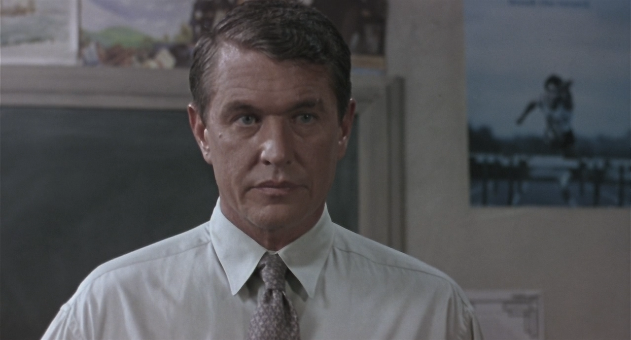 Okay. Week two of Back to School Month here at the Museum of Schlock where we’ve been discussing the problem of juvenile delinquency in American High Schools so naturally we’d have to work up to 1996’s The Substitute from director Robert Mandel. I got real excited for this one from the trailer alone. Like in Blackboard Jungle, one of the punk students throws something at the teacher when his back is turned. However, this time the teacher is Tom Berenger! When the punk chucks the beer can at his back, he catches it flings it in the punk’s face.