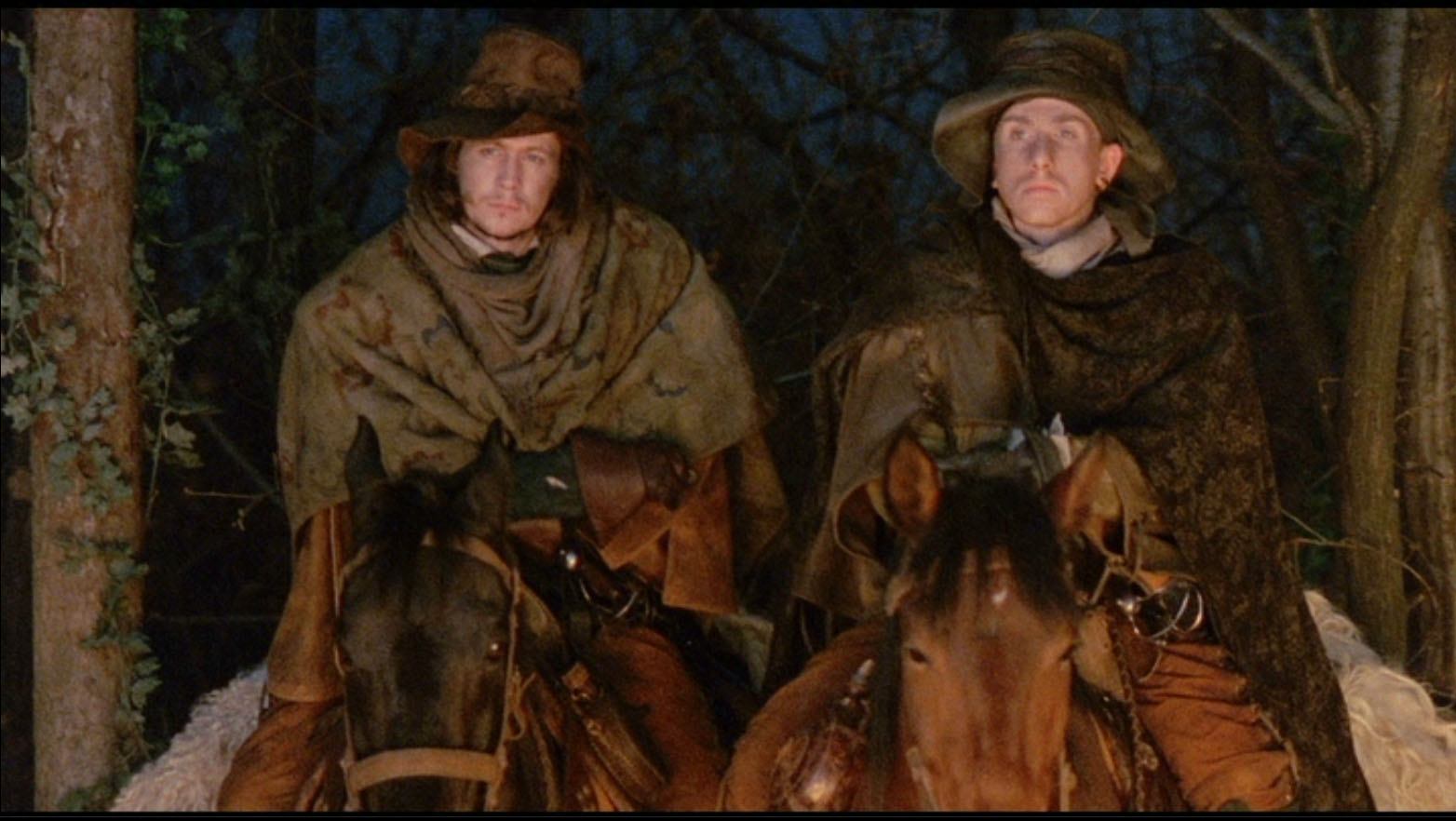 Tim Roth and Gary Oldman are priceless as the titular comic characters, questioning their existence and purpose—with brilliant obtuseness—all the way to the gallows. They are like Laurel and Hardy on hash, with a spot of Monty Python tossed in. Gary Oldman is the vulnerable, Stan Laurel type. Tim Roth is the alpha of these two fools.