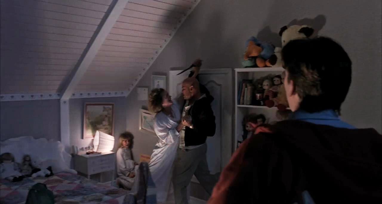 So Jonathan managed to see the killer’s face in that dream he had, notices the guy has a limp and that the guy owns a dilapidated TV repair shop. They figure out the killer is a man named Horace Pinker (Mitch Pileggi). Pinker manages to murder every single arresting officer sent to the shop save for Detective Don Parker. Pinker then tracks down Jonathan Parker’s girlfriend and murders her. Then he writes Happy Birthday, Jonathan in her all over the walls of his apartment. Like I said, this guy is really evil.