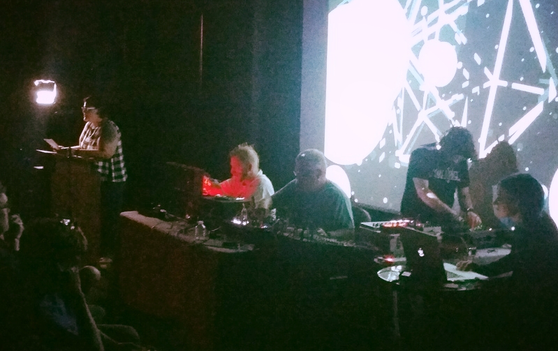 Ultimately, this event was wonderfully synchronized. The work of the poets intersected uncannily with the sounds being generated, the improvisation huddled up perfectly well, and the visualizations functioned in ways that went so far beyond what I imagined that it was a little overwhelming to be standing in the wash of light. Not bad considering that the actual event was the first time we put all of these ideas together to become the mutant it became, not, it turned out, a sewer-dweller.
