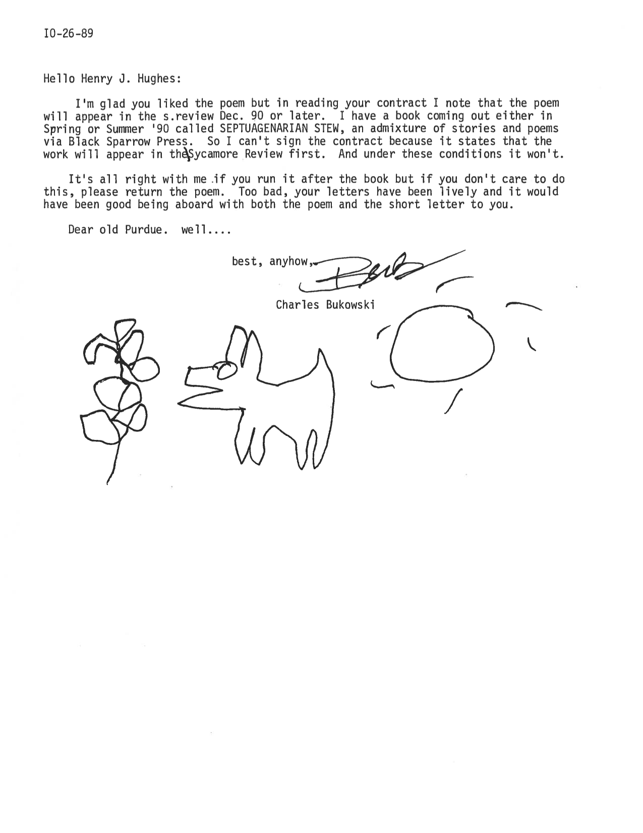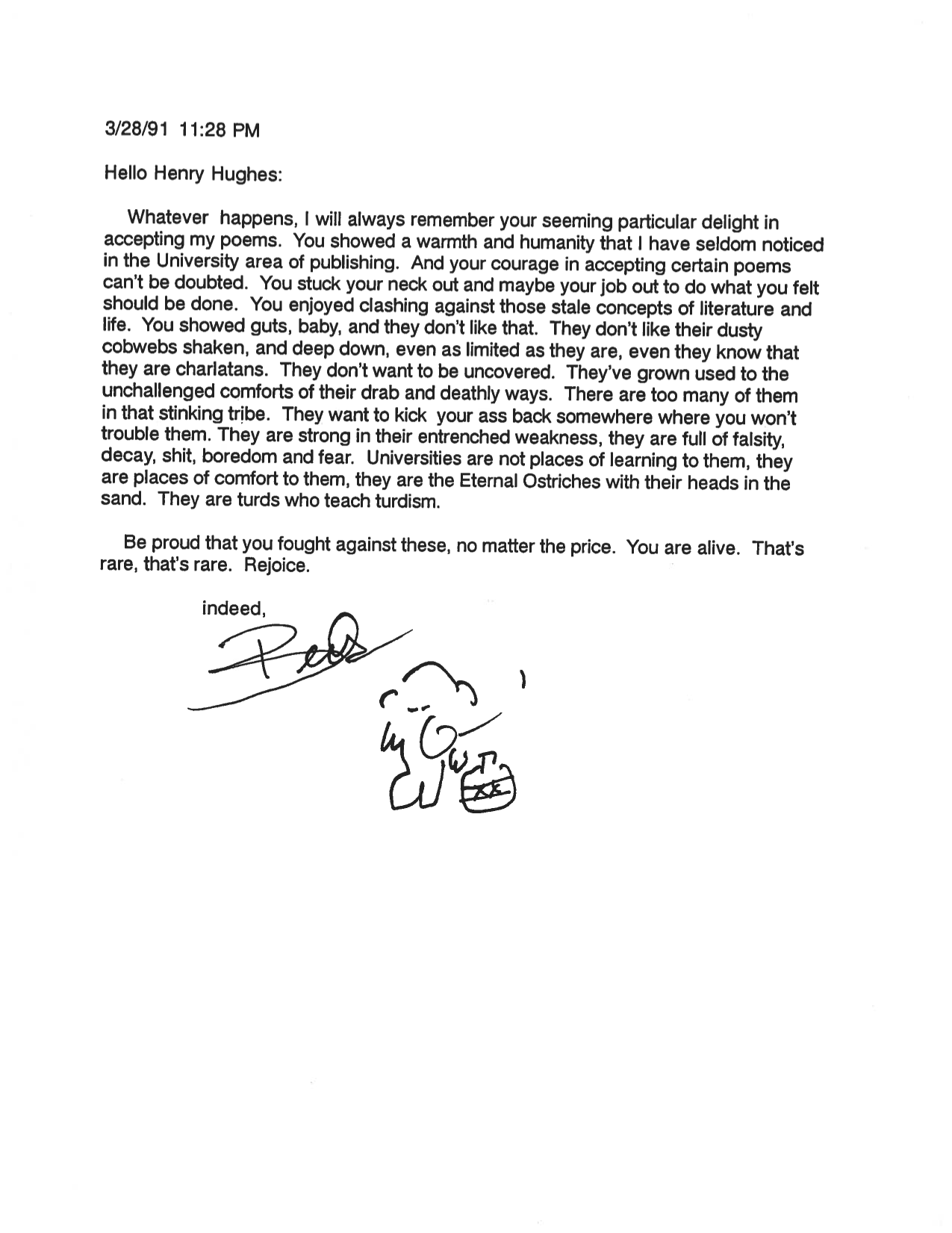 plus poet Henry Hughes writes me a letter about his own correspondence with Bukowski back from 1989 and 1991.