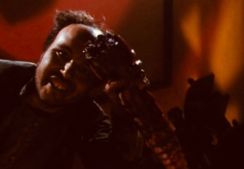 And then there’s Clint Howard—I mean Ricky. I seem to recall a scene where the coven was oiling up a naked Ricky with roach oil, prepping him to mate with Kim. I can’t really get that scene out of my head. There’s another scene where Ricky strangles an old man to death with Christmas lights and then the family Christmas tree catches on fire. I guess this makes this a Christmas movie.