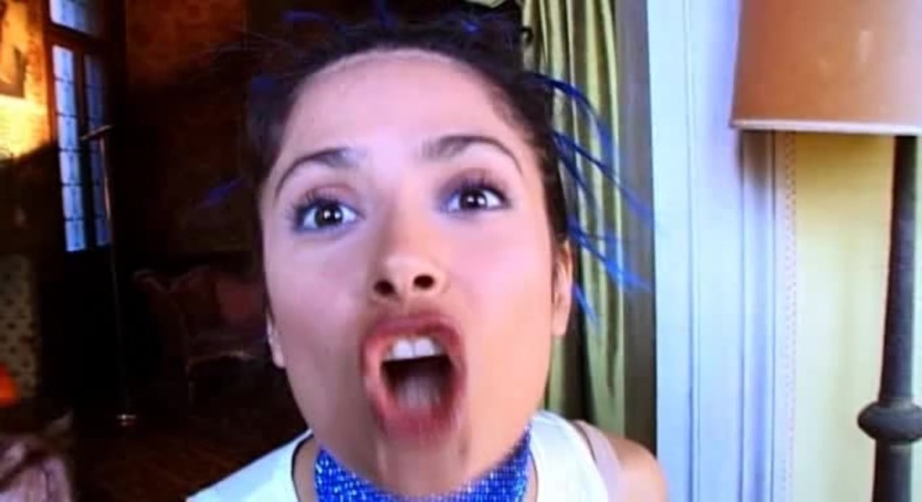 Hayek plays Charlee Boux, an extremely obnoxious MTV-style journalist from Mexico whose catchphrase is “Hello!” because I think she hosts a show in Mexico called Hello. She keeps asking to speak to the writer of Malfi, John Webster, not knowing he’s been dead for over 400 years.