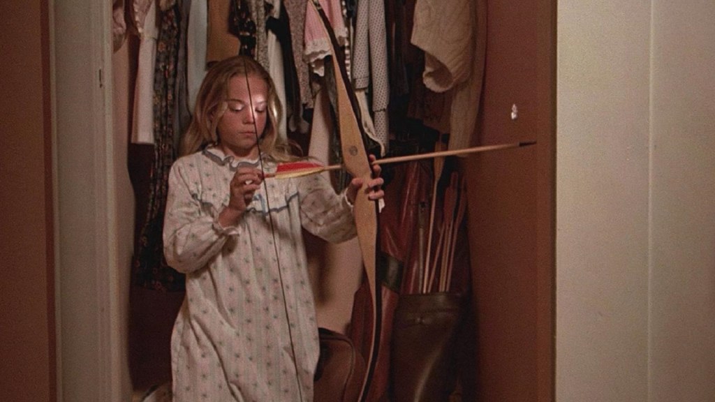 Fast forward ten years and we have a trio of miserable ten-year-olds whose idea of fun is murdering people and getting away with it. These are Debbie (Elizabeth Hoy), a blonde girl, Steven (Andy Freeman), a blond boy, and Curtis (Billy Jayne), a four-eyed little shit that I want to smack every time I see him on screen. They’re all little shits and I can only think that getting killed by them would be one of the humiliating experiences imaginable. If I have to go, let me die by that hands of a Cropsy or a Michael Myers, not this trio of despicable brats!