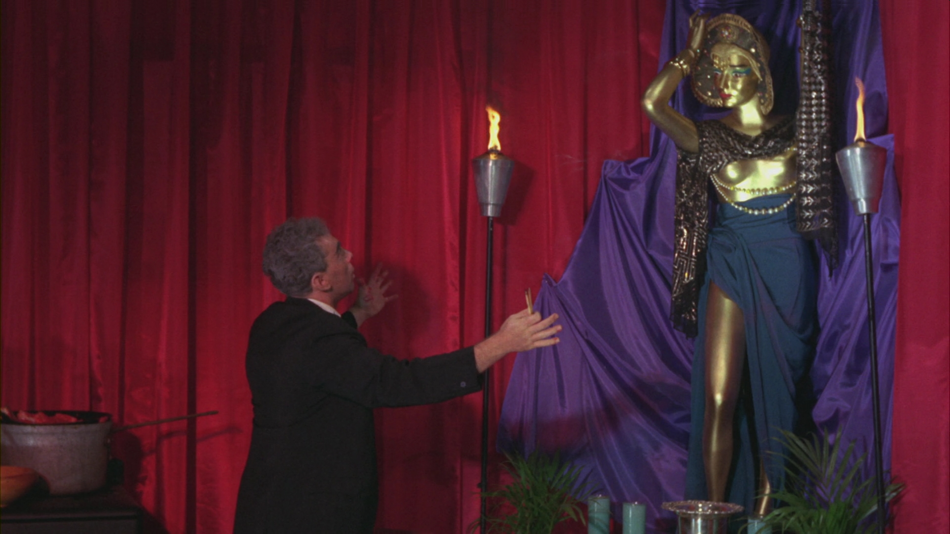The guy going around murdering women is named Fuad Ramses (Mal Arnold). He runs a local grocery store and has written a book on bizarre Egyptian cults of the ancient world. One such cult worshipped the goddess Ishtar and that worshipping demanded the preparation of a “blood feast.” Basically, it’s just an excuse for cannibalism. And he’s preparing this blood feast at a party hosted by, naturally, wealthy socialite Dorothy Fremont.