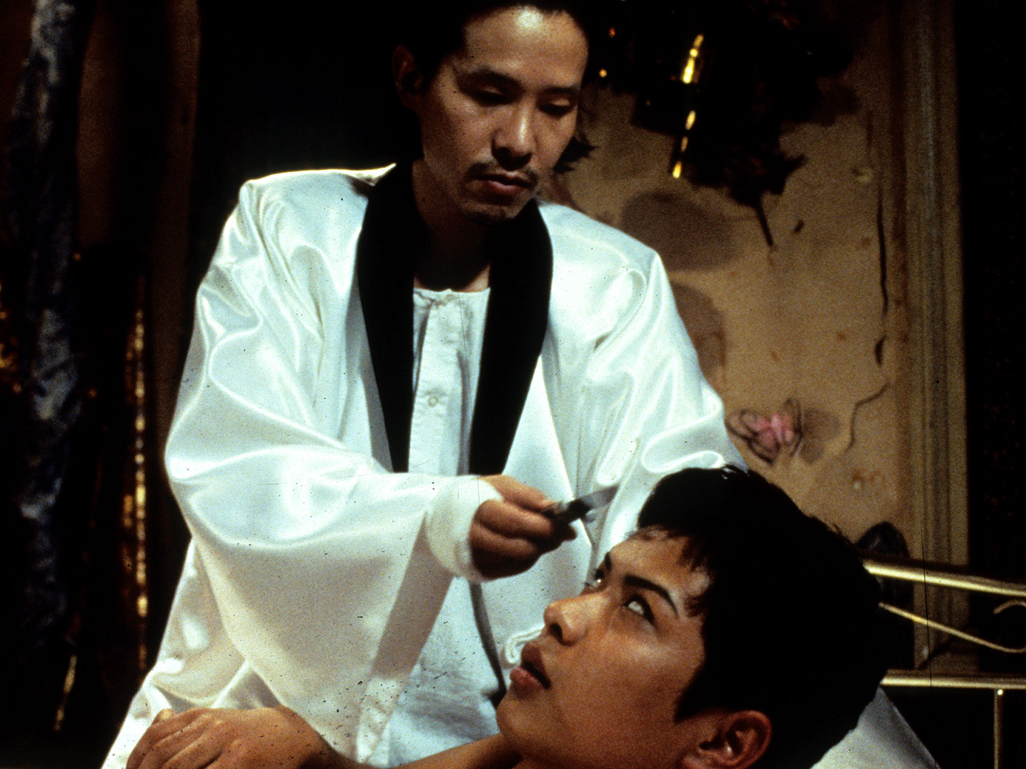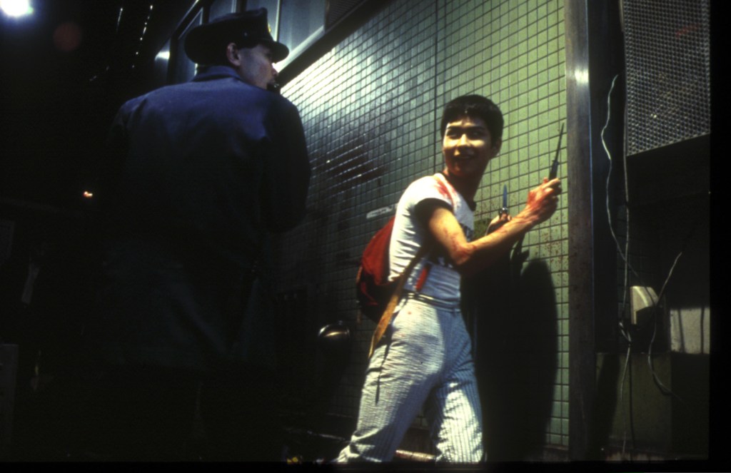 Tatushito is busy hunting for Wang Zhi-Ming (Tomorowo Taguchi), the leader of the Dragon Claw (which is the name of a Triad outfit). Wang is suspected of the murder of a night patrolman. Seems the poor guy was slashed in the neck and wrist, blood was spraying everywhere. It actually wasn’t Wang, but one of the male prostitutes in his employ who was a bit on the psychotic side. Not that Wang is that well-balanced either. During a negotiation with another gang, he crushes a glass of bourbon in his hand to show how badass his is, but really, those glass fibers are going to get all in your palm.