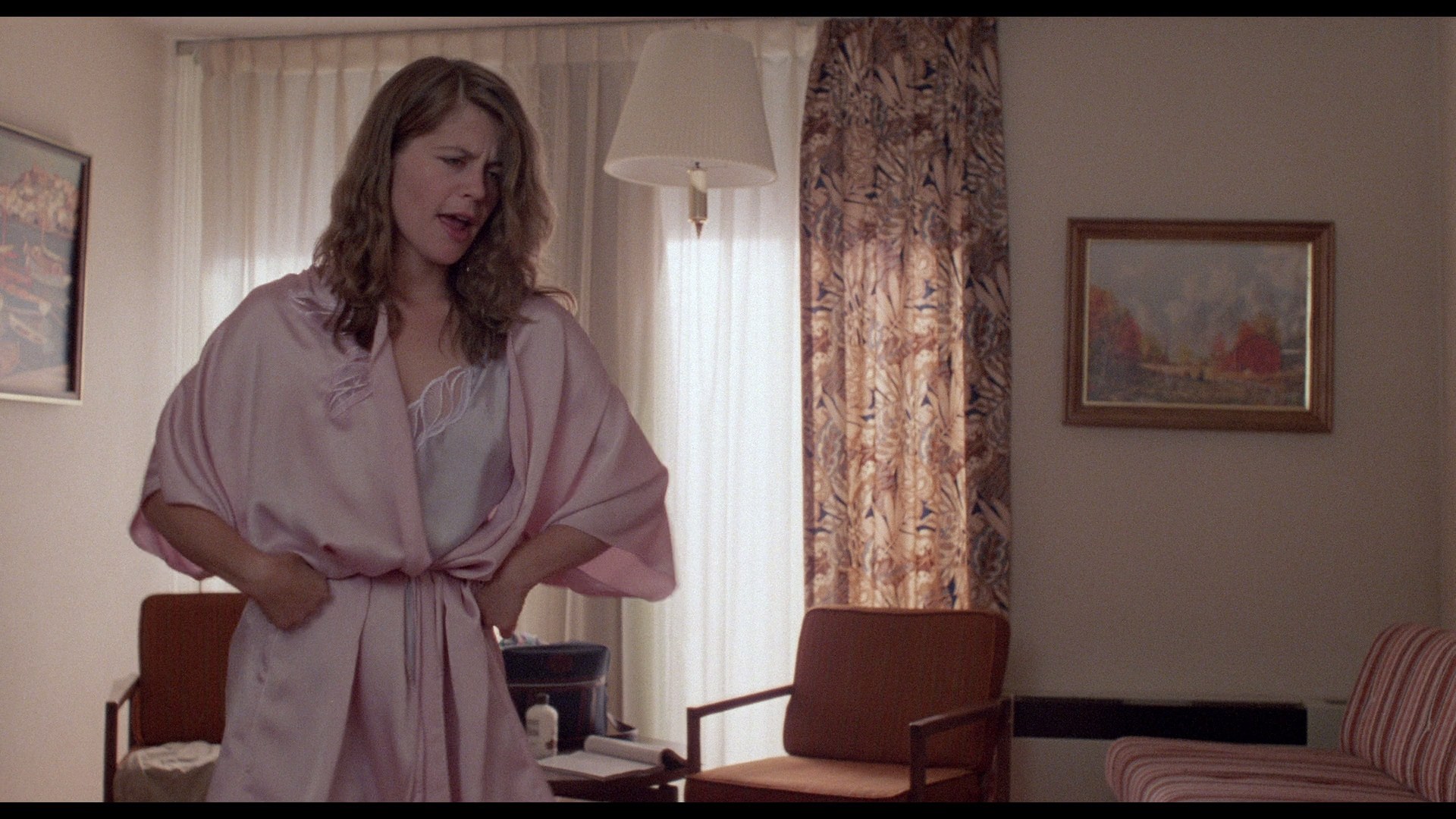 We’re introduced to a young couple, Burt Stanton (Peter Horton) and Vicky Baxter (Linda Hamilton). They’re traveling to the west coast where Burt has a medical internship lined up. I guess he’s studying to be a doctor. While trying to find out where they are in the endless cornfields of Nebraska, Burt runs over a boy named Joseph, but don’t worry, Joseph already had his throat slit and was going to die anyway. Joseph was murdered by this deranged looking redhead named Malachai played by Courtney Gains. I kept thinking he was a younger version of Carrot Top.