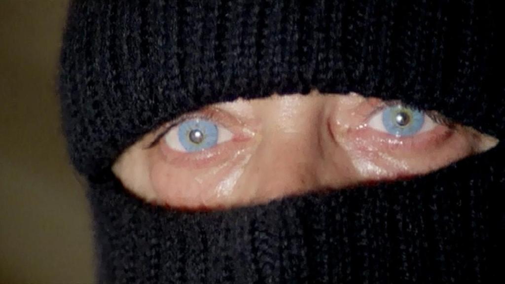 Did I mention that Nicole is an exotic dancer? Yes, that’s how she earns a living, taking her clothes off for mouth-breathing audiences. In between performances, she gets phone calls from a creeper wanting to know where the diamonds are. Later, she’s alone in her apartment after having a fight with Michel. The creeper shows up, clad in some kind of ski mask and glaring at her with bright blue eyes. He speaks to her with an electronic larynx attached to his throat. He asks her where the diamonds are. Nicole says she doesn’t know. The creeper threatens to slice her up with a straight razor if she doesn’t have the diamonds the next time he visits.