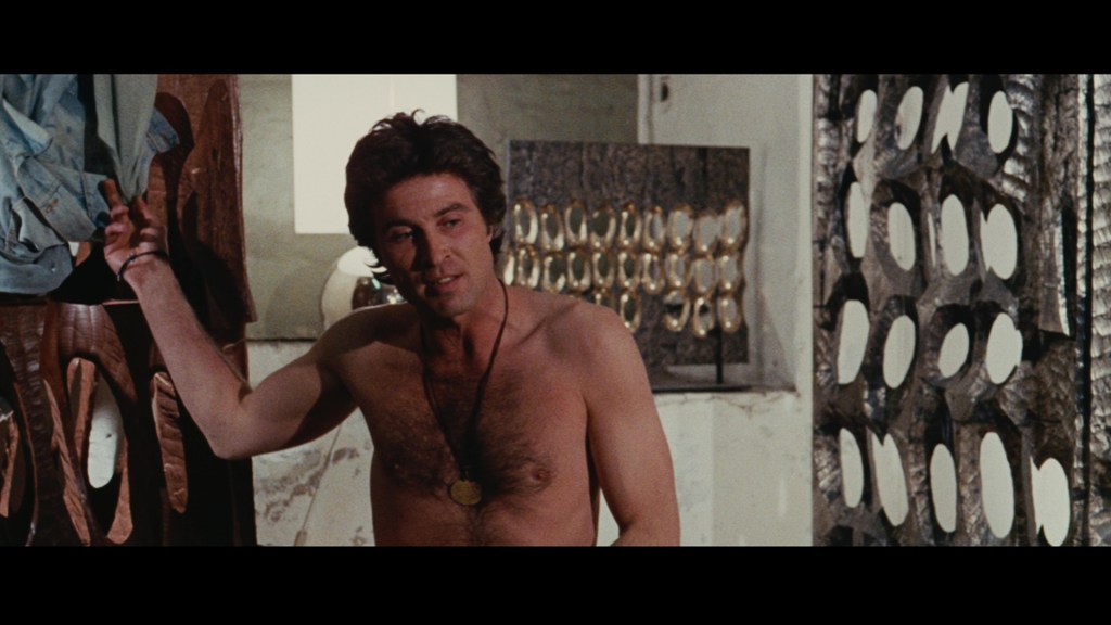 I think she meets a shrink at some point that believes the hallucinogenic drug she took unearthed a repressed memory of a murder she witnessed. Nicole is determined to solve this mystery as the murderer stalks her. He tries breaking into her apartment with that spiked glove of his. Her artist neighbor, Stefano (Peter Martell), runs to her aid after he hears her screaming. However, Stefano saw no sign of the killer.