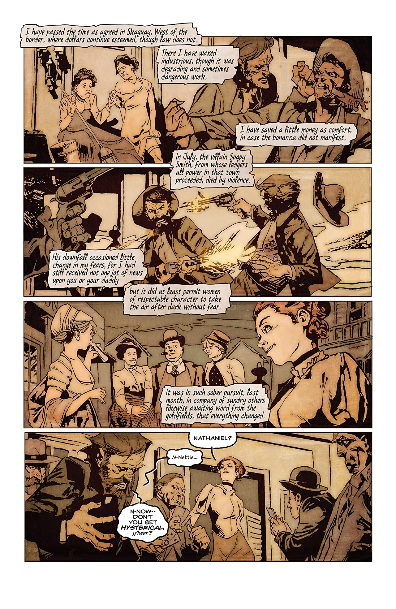 I began my year reading a fairly long novel in the form of The Luminaries by Eleanor Catton and am ending it with a similar tale in Si Spurrier, Nathan Gooden, Addison Duke, and Hassan Otsmane-Elhaou’s This Hungry Earth Reddens Under Snowclad Hills. There is a common thread: the turn of the century lust for gold. But while the former is steeped in the locality of Hokitika, New Zealand, The Rush takes its inspiration from the Yukon valley and the cold that seeps into the bones of every person to pass through for their gold.