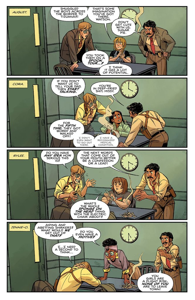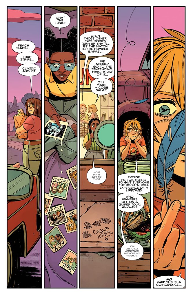 Typical of Morrison’s shorter comic runs, Proctor Valley Road feels full of momentum and essential power. This five issue series could have easily been spread out to double that, but there is no wasted effort in the storytelling. August, Cora, Rylee, and Connie each get their moments to let their characters shine as they push through the breakneck pace of this dangerous plot, but the constant movement centers the plot of every issue.