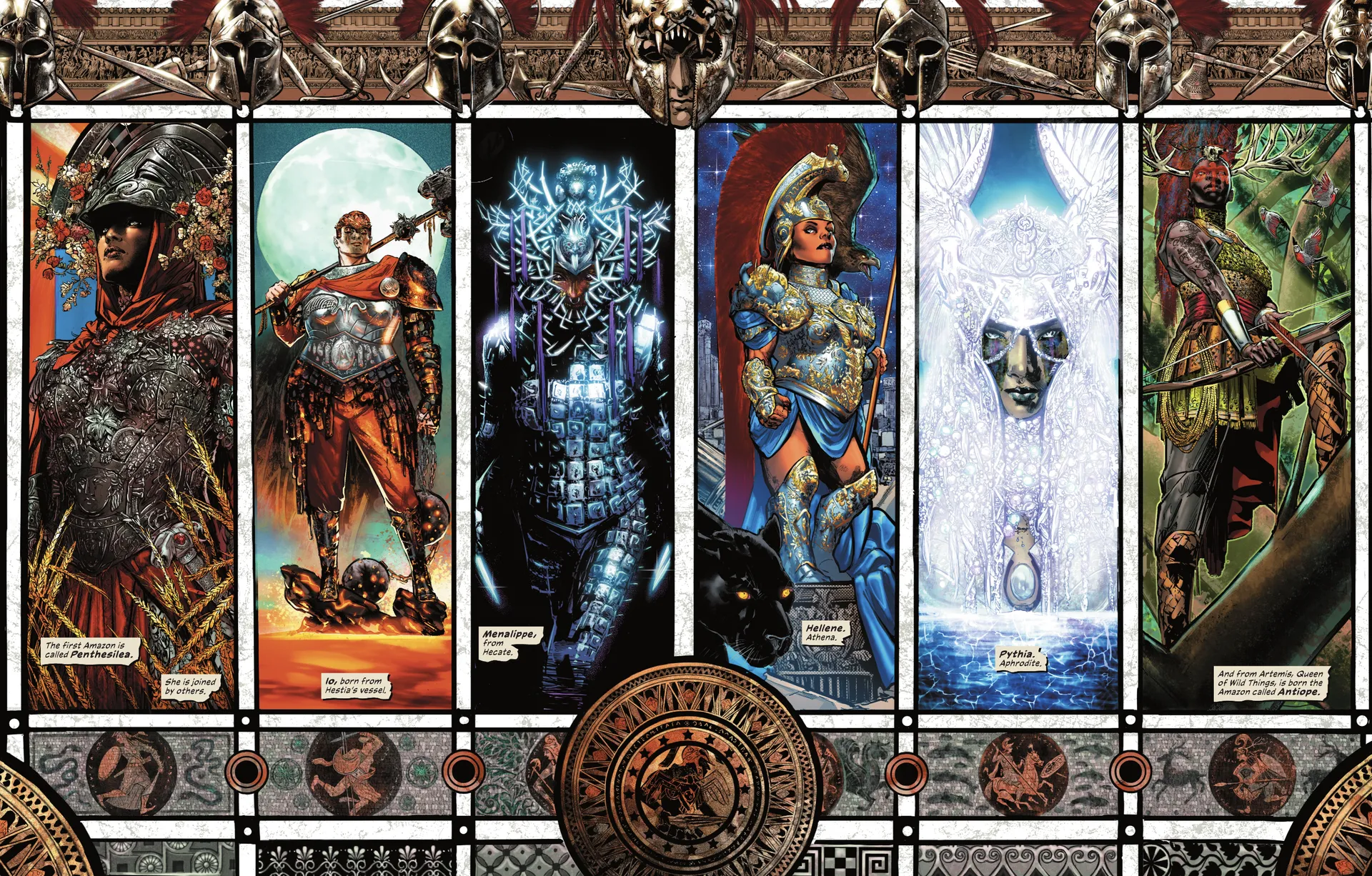 Wonder Woman: Historia is a modified history of what we know about The Amazons. We know Themyscira. We know Hippolyta. We don’t know the actual origins of either of them. Where did this island come from? How did it become the haven that it is in canon? Where did Hippolyta even begin? To answer any of those, we’re given an origin story. The goddesses Hestia, Artemis, Demeter, Hecate, Aphrodite, Athena, and Hera have seen the atrocities committed by men against women and have demanded an end to men. The gods of Olympus, as per usual, scoff at the idea and essentially shoo the goddesses away. The goddesses meet again, sans Hera, to create something new. From this meeting, the Amazon Tribes arise. And from here as well, he meet Hippolyta, but not as the leader of the Amazons just yet.