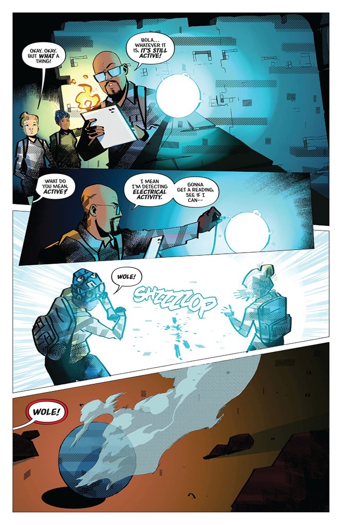 Between the town of Buckhead and the strange video game Toba found in his school, the theme of being trapped runs through this story. Even the cover has a slow incursion of chains coming for our main characters. But Shobo, Kambadias, and Campbell are subtle through this first issue. It’s like stepping into a trap that you’re too deep in to before you notice the door closing behind you. And the trap itself goes beyond the physical. Toba is coming from Nigeria to a small town in another country where all but three other people mispronounce. But he’s still much too young to go off on his own, so he has to stay in a place that doesn’t know or understand him. It’s also a place that he doesn’t know or understand either—the mystery of it locking him in place while he tries to figure out why people suddenly freeze or why his dad is in a video game.