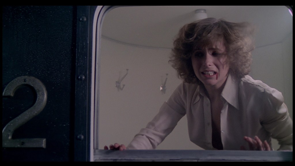 The blonde woman and two malcontents force their way into the compartment and bad things happen to the two girls resulting in Lisa’s death. Margaret tries to escape from the train, but dies on impact when she hits the ground outside. Blackie, Curly, and the blonde get rid of Lisa’s body and any other evidence the girls were on the train. If you think that’s the end of the movie, you’d be wrong.
