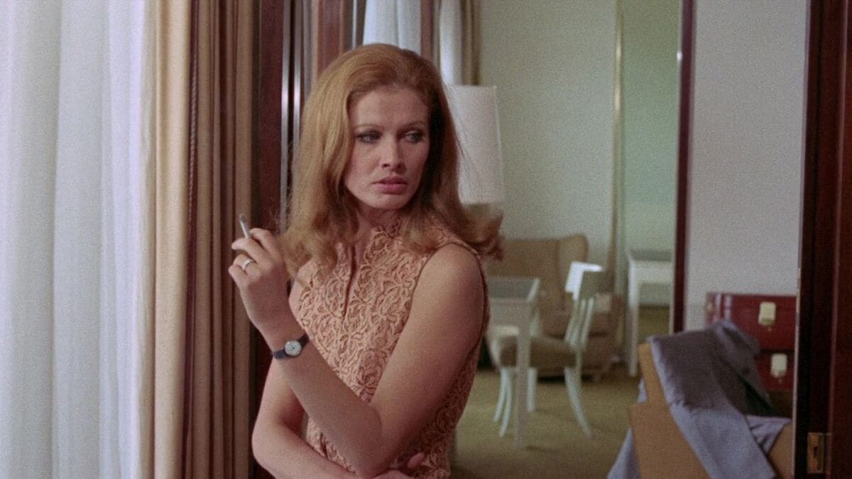 In Athens, she meets a handsome man named Peter Lynch (George Hilton), but she quickly deduces that he’s an insurance investigator. Later, Lisa runs into Lara (Janine Reynaud), her husband’s late mistress. Lara tells her that Kurt was going to divorce Lisa and marry her. Lara demands half of the insurance money or she’s going to have her lawyer, Sharif, rearrange Lisa’s face. Lisa evades them thanks to aid of Peter Lynch. When she gets the check, she insists on getting it cashed right away instead of waiting until she’s back in London.