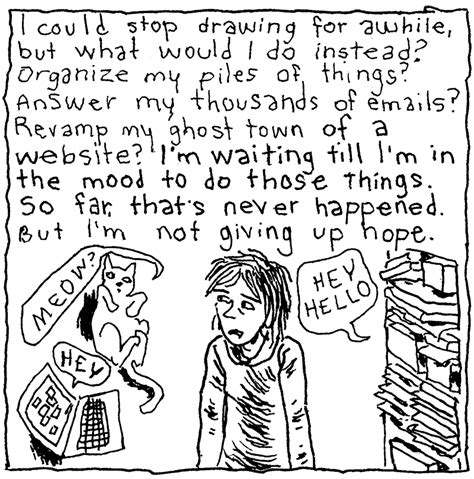 I’ve never been able to work in a cafe. There’s always something about the noise and the continual threat of someone wanting to talk or look at whatever I’m working on. But then others can get something more from the feeling of being out in public and having their work out there, even if it’s something they subtly try to hide with one arm as they sketch the person sitting across the cafe from them. It’s the kind of technique Gabrielle Bell goes through in her short diary work, Career Shoplifter.
