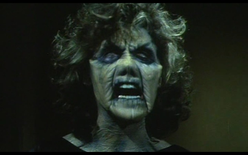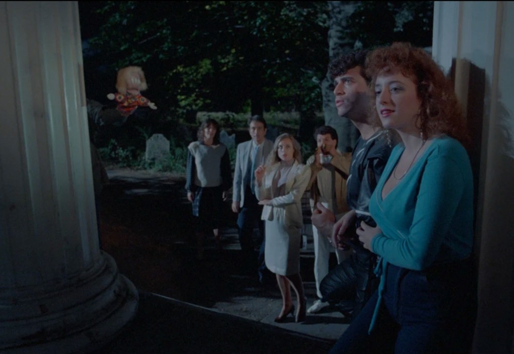 There’s a scene where the punks and yuppies play around with a ouija board. They ask all sorts of questions like if they’ll live through the night, but the board says no. One of their own turns into a zombie controlled by Kreon. The rest of them are picked off one by one by a grim reaper or some baby demons. We even get a scene with farting muck zombies. Maybe just watch the trailer for this one.