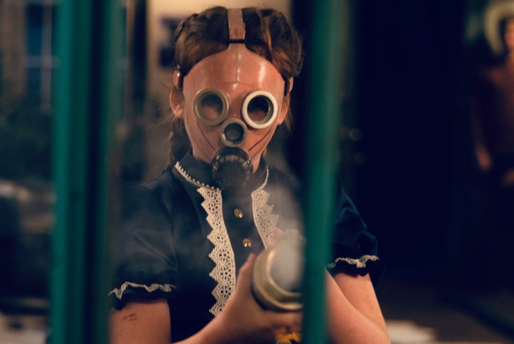 The movie begins with a teenage boy emerging from a corn field in Rylstone, Nebraska. A young girl named Eden (Kate Moyer) watches the boy go on a stabbing rampage at an orphanage. He kills the adults, but leaves the children alone. The local sheriff assumes it’s a hostage situation so he pumps a gaseous animal tranquilizer into the orphanage in an effort to subdue the suspect. This has the unfortunate consequence of killing the children in the orphanage. The sheriff laments that he’ll probably lose reelection over this.