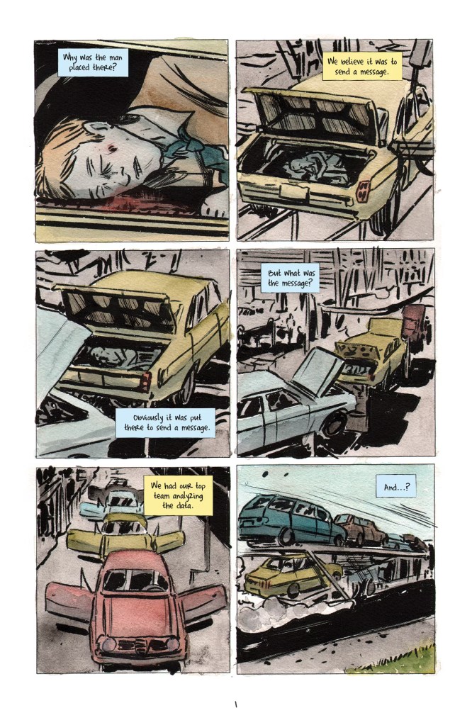 Kindt walks a tight line between glorification and condemnation of the work being done by these spies. In some cases, the work is necessary—namely in the case of finding a secret Nazi nuclear facility in the waning days of the second World War. But in others, it’s tying up loose ends that didn’t need tying. How far can these people go when tasked with an assassination? And that all of this is rendered in Kindt’s emotive watercolor style only adds to the slippery feeling these characters exude. Looking them dead in the eyes, we don’t know what’s going on in their heads. Necessary for a spy, but terrifying for whoever confronts them. And that Kindt contrasts this exact image with our sunglasses-wearing stooge in Jay Bartholomew III throughout Spy Superb only cements the idea further.