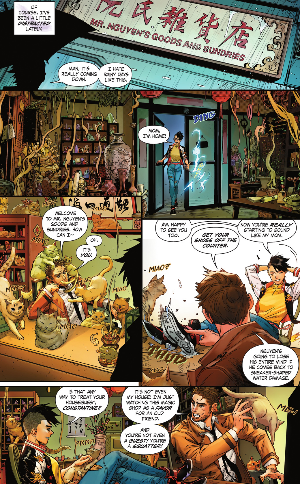 While Shazam blends its Golden Age sensibilities between the transformative phrase, the Rock of Eternity, and the gods that control Billy’s powers, Spirit World instead has strict rules for and structures around its magic. A rigid set of enchantments, incantations, and papers that help Xanthe navigate the troubles of living world. That Constantine shows up in Spirit World cements this fact further. Magic, as in many stories, is rather nebulous in the DC Universe. And yet we know it well just from the first issues these two series had released.