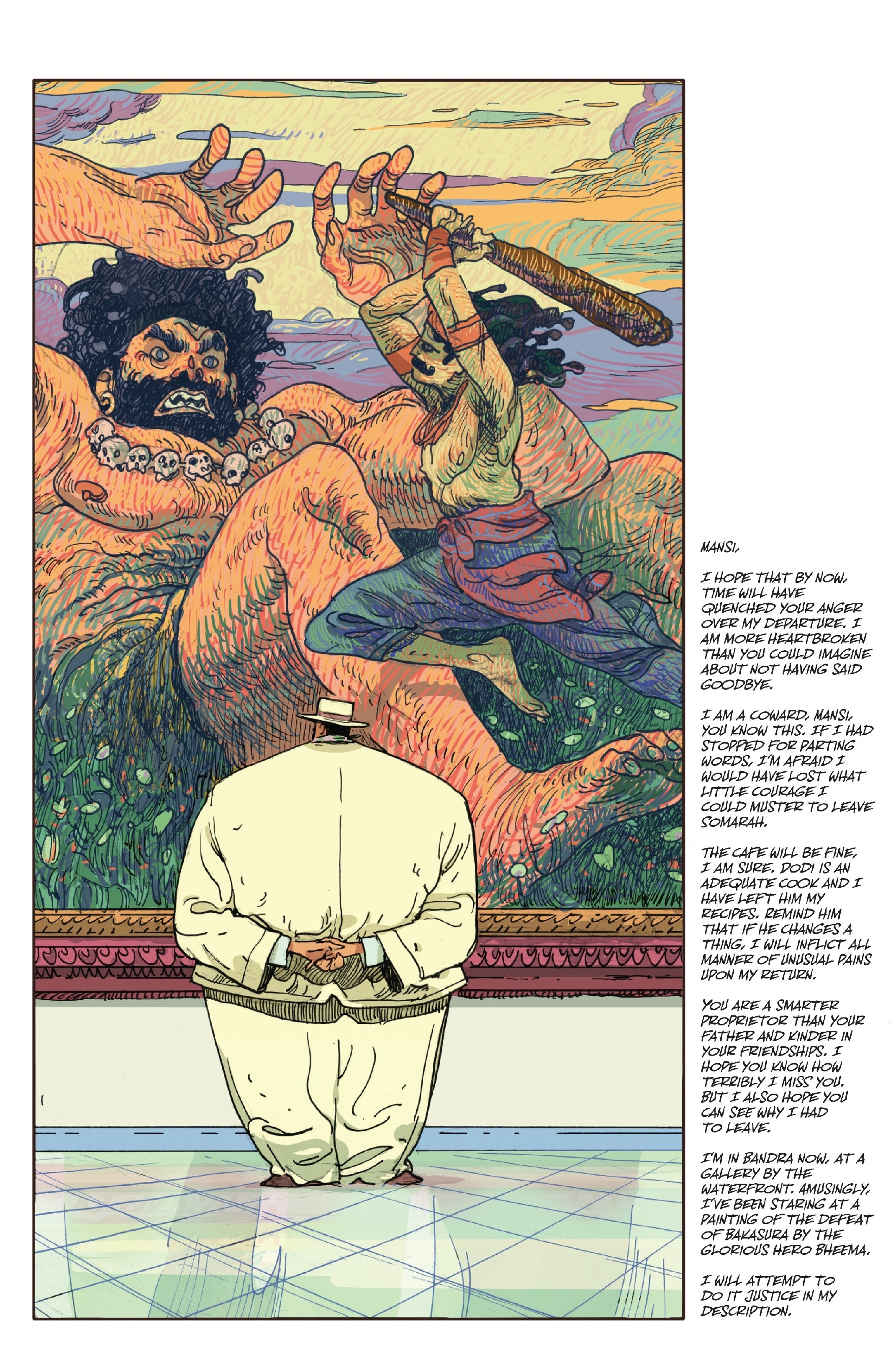 One of the most relaxing things I would do when in the grips of the initial plague months was watch food documentaries. As I didn’t have the ingredients or skills, watching these shows helped me feel like I was connected in some way to what was on the screen—I could sit and savor with the narrator despite being hundreds of miles away and months in their future. But while that narrator may have a dozen or so years of knowledge to pull from, they can’t compete with thousands of years that a figure like Bakasura, one of the more infamous rakshasa in Hindu mythology, possesses. This is where Ram V and Filipe Andrade take the world in their new series, Rare Flavours.