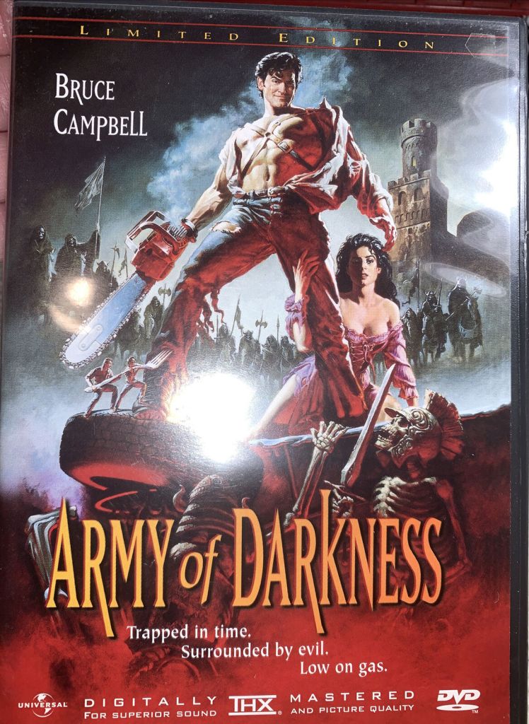 My next purchase was the special edition of Army of Darkness put out by Anchor Bay in 1999. This was THX Certified and came with a remastered version of the original Army of Darkness plus a Director’s Cut of the movie with an alternate ending. The Director’s Cut featured an audio commentary with Bruce Campbell and Sam Raimi where they got along swimmingly. I suppose Army of Darkness was my first introduction to what we used to refer to as the double dip, purchasing the same movie again on DVD to get some added features.