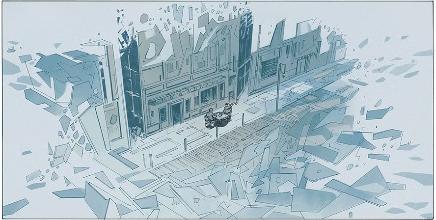 Of my many fears, collapsing bridges are most recent. When stuck in traffic on a highway fly-over, it’s hard not to think of it splintering and cracking apart while trapped in my hatchback. When faced with the inevitable, our minds simply don’t know what to do to escape. This loss of control appears in the first issue of Richard Blake’s series Hexagon Bridge.