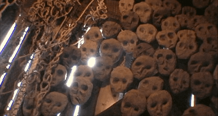 Before Kobayashi disappeared, he assembled a final cut of his documentary which is shown after Shiraishi’s intro. The first thing we see is a woman in a blood red devil mask screaming and writhing on the ground. If you were to think the subject matter involves demonic possession, you’d be right, but there’s all sorts of messed up stuff going on in this documentary. Psychics, ghosts, and men dressed in tin foil also come into play.