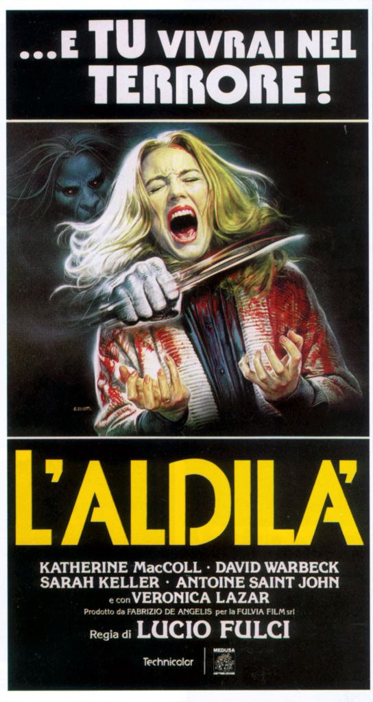 Tonight’s movie is 1981’s The Beyond from director Lucio Fulci. This is the greatest horror movie of all time. Full stop. The Beyond is like The Amityville Horror if The Amityville Horror fulfilled its promises. Instead of James Brolin whining about the lost catering money, you get a corpse rising from a draining bathtub ready to impale the housekeeper’s head on a nail sticking out of the wall. Something horrible happens every five minutes in this movie. It’s the cinematic equivalent of a haunted house attraction.
