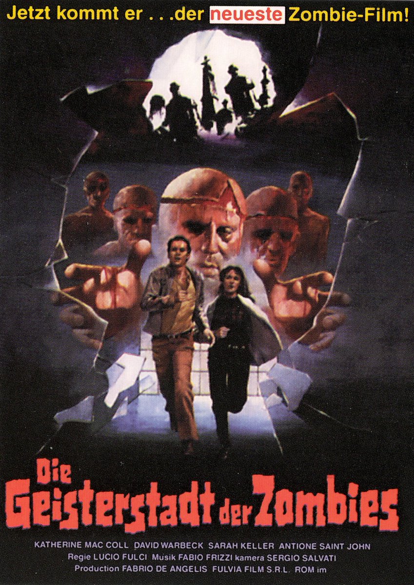 Joe the Plumber (Tonino Pulci) shows up to fix the water problem, but accidentally opens up one of the seven gateways to hell. We know this after he breaks some kind of Satanic seal and a zombified hand reaches out and gouges his eyes out. When Joe’s corpse is found later, it seems to be puking up bile. The corpse of Schweick also surfaces and both bodies are brought to the hospital for examination. Joe’s widow and teenage daughter come to see the body, but before you know it, Joe’s wife is taking a sulfuric acid bath while his daughter tries to run from a gelatinous blob formed from what was once her mother’s face.