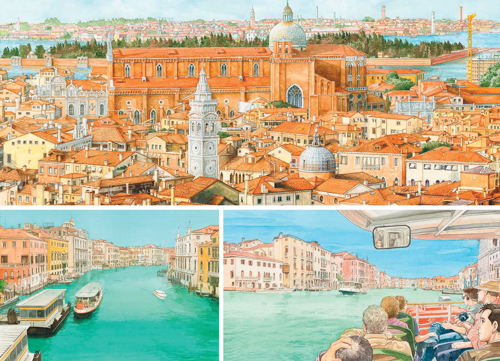 Venice is a travelogue and memoir for people that Taniguchi has either never met or only has the most fleeting or memories about. When his mother passed, he inherited a box of old photos and postcards—things he had never seen before or had heard his mother talk about. In this box, he sees what he believes is his mother as a child, his grandmother who he had only met briefly, and a man he believes to be his grandfather. Using these photos and postcards, Taniguchi retraces their steps through the city while attempting to recreate much of what they had seen in his own art. In this slow, methodical walk through the city, he feels a connection to grandparents who eluded him his whole life.