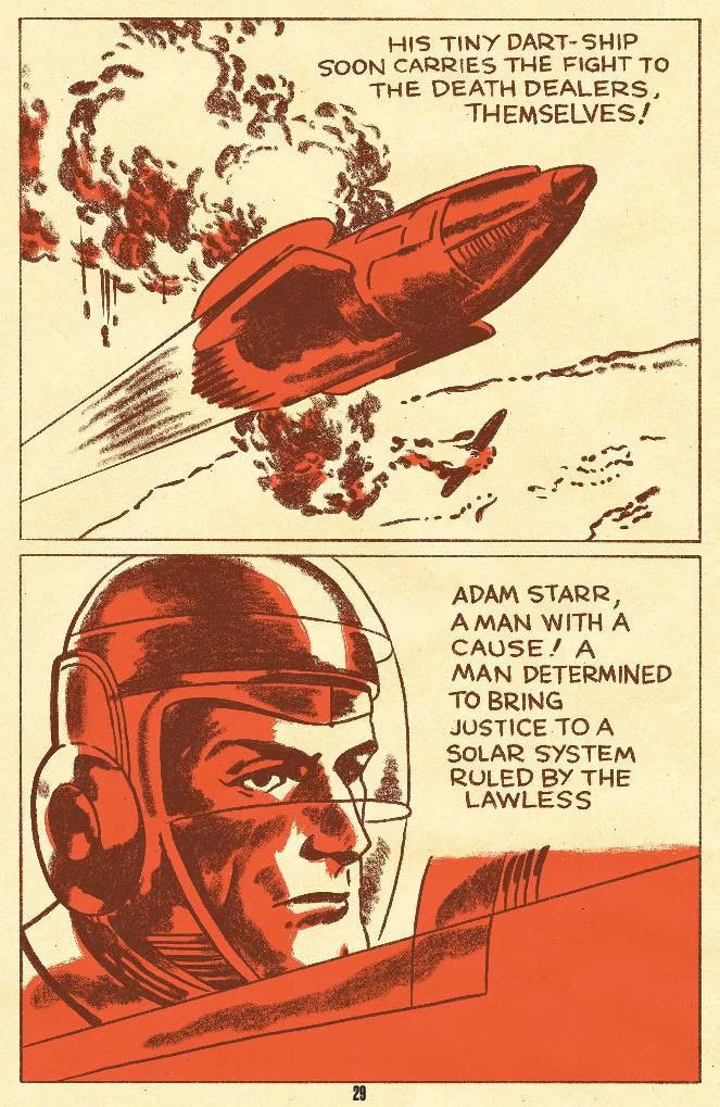 83 years later, we see a new version of the story, remixed by artist and biographer Tom Scioli in Jack Kirby’s Starr Warriors Starring Adam Starr and the Solar Legion.