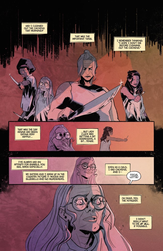 Golden Rage is a comic you think is going to be a bombastic series about grannies fighting over a scrap of land and piles of Golden Girls references. While we do get some of the latter, the former was never really the point. This isn’t a comedy of bloodshed, but an intricate look at how we feel about women aging and growing old. We see their youth for as long as it’s there, but after that, we’d prefer to push them out to sea. And even after that, they can still find time for tea together.