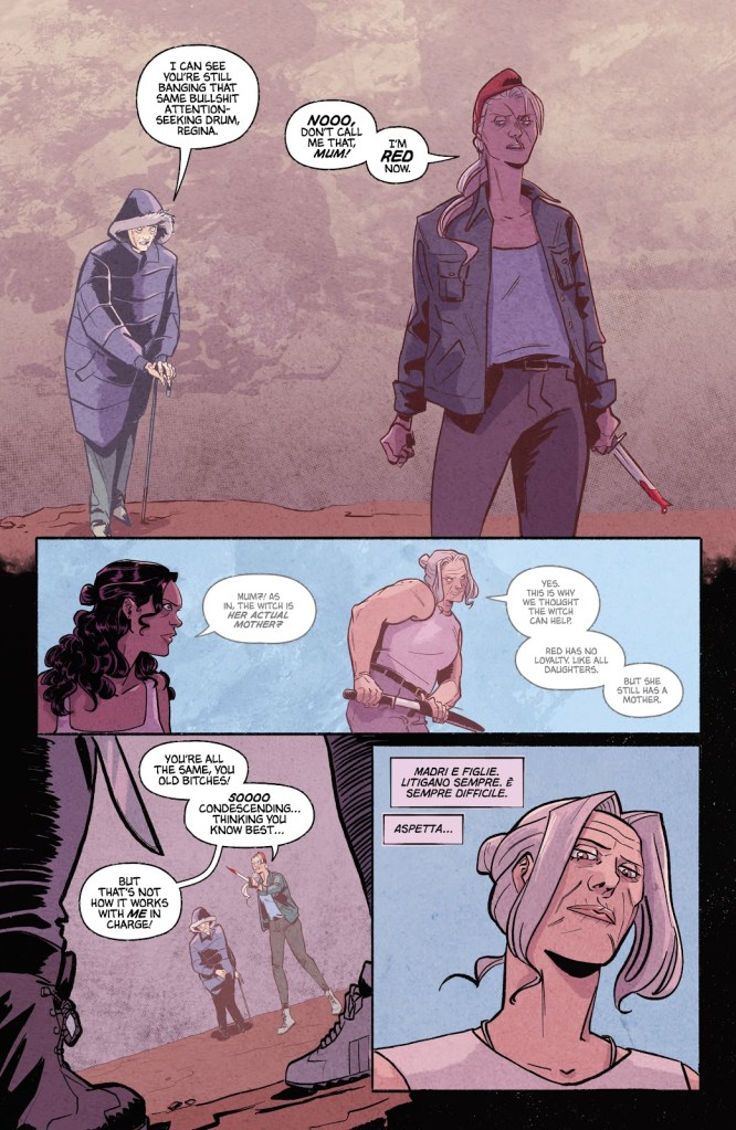 The last time we saw Jay, she had been dumped onto the island filled with old women and was preparing to fight for her life. Only the fight they thought was coming to the lighthouse of Rosie, Lottie, and Caroline was a warning from a friend—one of the Red Hat Gang that’s been perpetuating most of the violence on the island. What follows from there is Jay and her friends traveling the island to get away from the Gang before being confronted with their new leader: Regina, another woman much too young to have been sent to the island. But what follows from here is not what we expect. In a traditional Battle Royale, we’d see a gathering of forces and lines being drawn in the island before the inevitable bloodbath. Instead, we learn about what will happen to the island—that people are coming from the mainland to “clean up” whoever is left there. And so we have a coming together, a preparing of defenses island-wide to ensure that they’re all able to survive.
