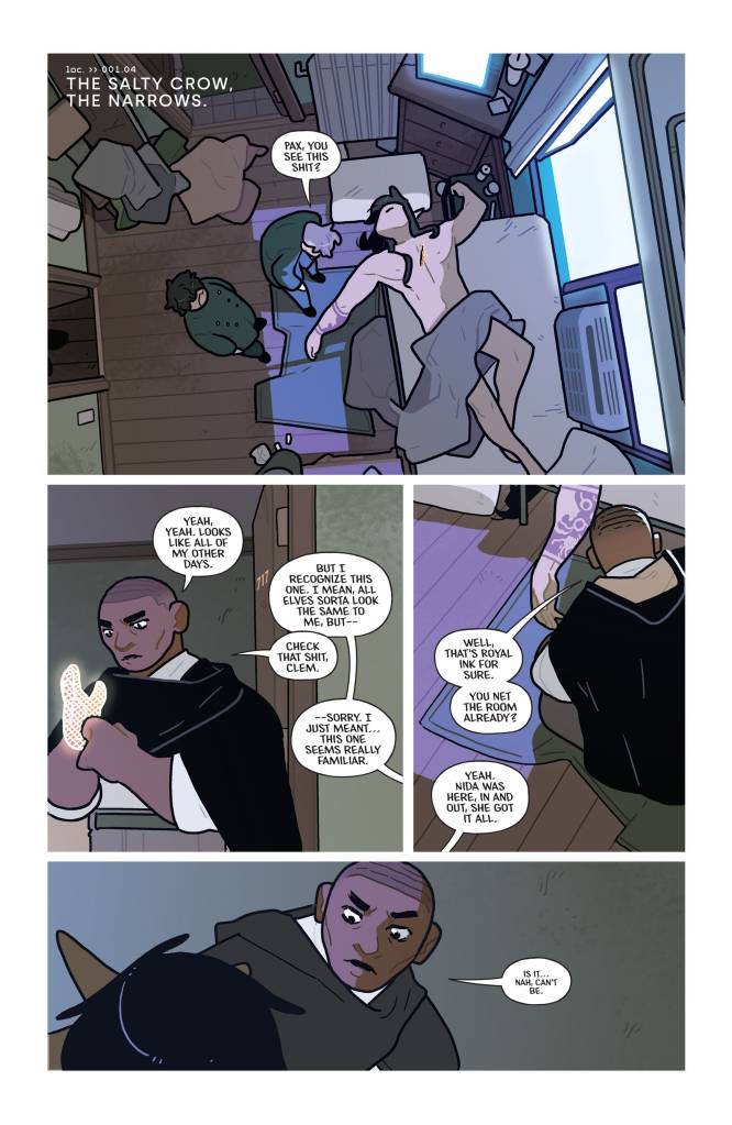The mystery showcasing the slowly unraveling city isn’t the only thing on display here from Thompson, McClaren, and Carey. There is an intricacy to the world that’s been created here and it feels like we’re only seeing a couple notes from a tome of a lore bible. The different races and factions throughout the city, the cultures we briefly see as Phaedra and Pax make their rounds, the policies and procedures they have to follow when investigating certain parts of the city—it all culminates in a world that feels not just well-developed, but authentic.