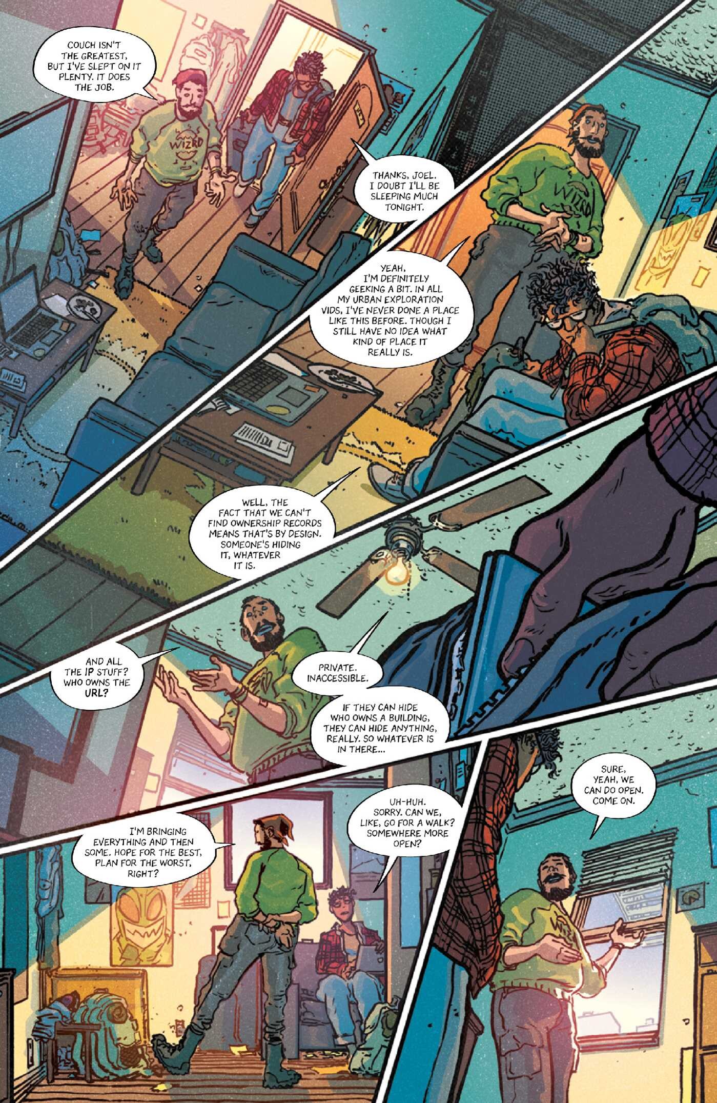 Unfortunately, Wren finds her answers and it’s here Blink becomes something more. Where Wren was born is a facility set up during the dot com bubble by a millionaire who wanted to create art by recording people’s lives. But then he just never let them out. Those locked within became tribal, started to change and mutate themselves to follow the millionaire’s will while others donned masks to hide their faces from the camera. And then the fighting that led Wren’s parents to push their newly born child out of a window in the compound’s basement sealed the building for good. No one in or out for twenty years. The people left inside began to curdle—their minds left them as they worshiped the deity of observation called Blink. But it wasn’t a delusion as when Wren returns, she acts as the catalyst for the summoning of this new god. Where we would expect deranged mythologizing from people who haven’t seen the sun in decades becomes frighteningly real and it’s that twist—along with the distended arms of Blink reaching through reality—that lingers long after the story ends.